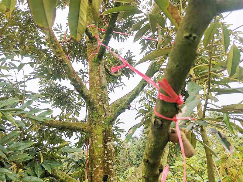 • เคยใช้เชือกฟางตามตลาดมามัดโยงกิ่งทุเรียนแต่ไม่ได้ผลเสียเวลาเปล่า เชือกฟางไม่ทนเหมือนเชือกโยงทุเรียน